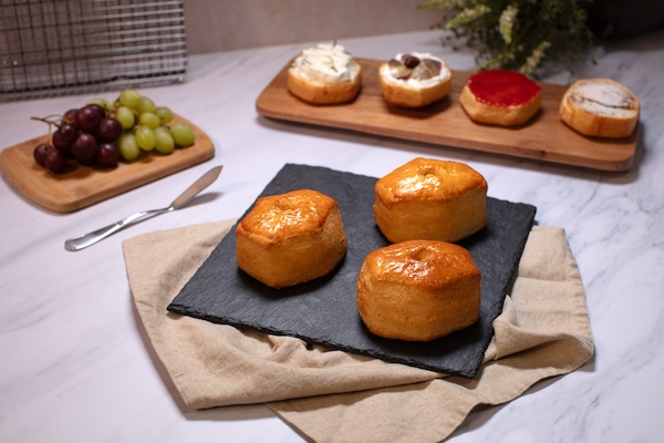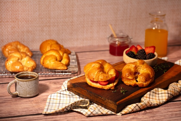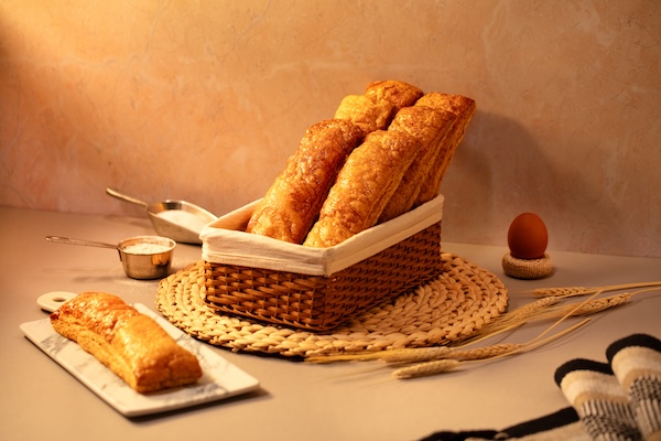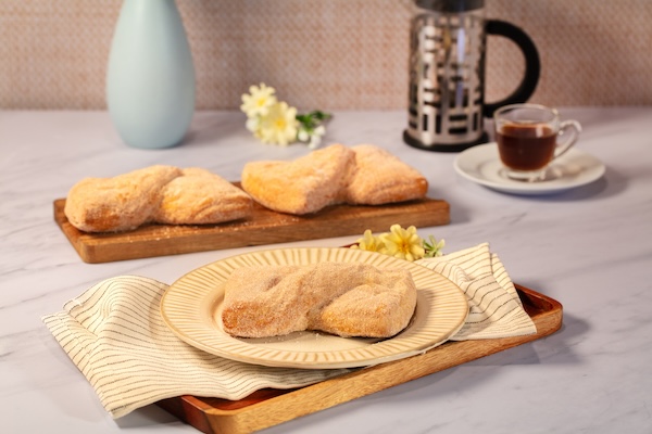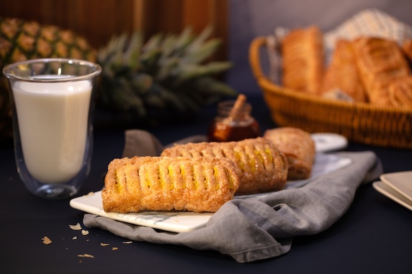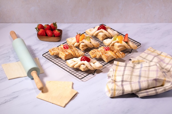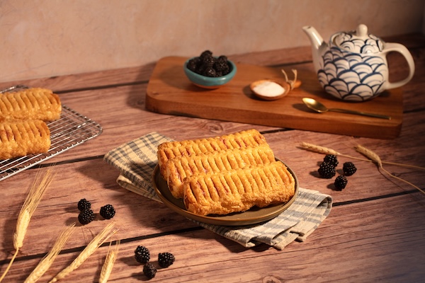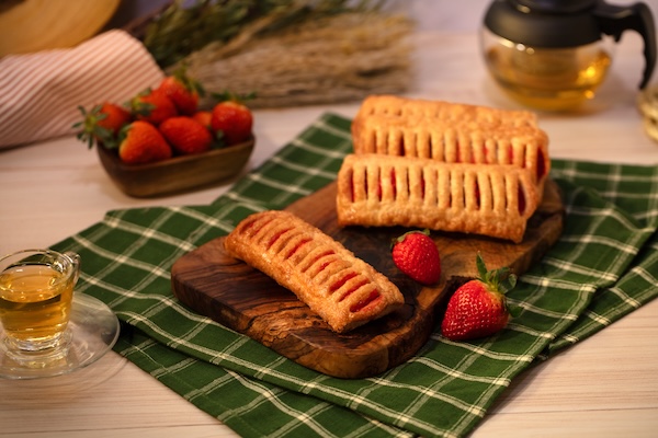 Masa con relleno de queso con zarzamora, ofrece una textura crujiente al hornear.