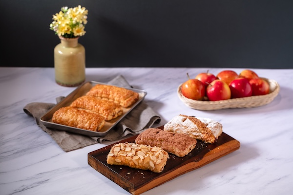 Postre horneado con relleno de manzana, combina el dulzor de la manzana con una textura crocante.